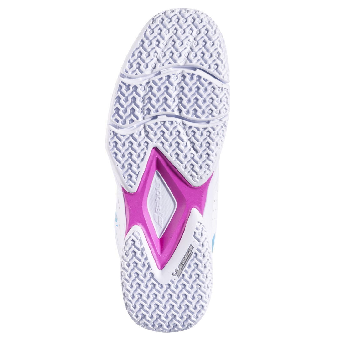 Die Babolat-Teams haben in Zusammenarbeit mit Michelin die erste Sohle entwickelt, die speziell für Padel konzipiert wurde. Diese Sohle bietet eine herausragende Flexibilität dank der beiden Rillen unter dem Vorfuß des Schuhs (360 Flex Technologie) und maximale Dynamik durch ein 100%iges Padel-Stollenmuster, perfekt für Sand und Kunstrasen.